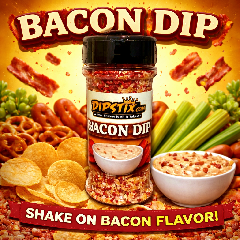 Get ready to bring bold, smoky flavor to your favorite dishes with DIPSTIX Bacon Bacon! This crave-worthy blend features real bacon bits, savory onion, rich hickory smoke, and our signature seasoned salt blend for a flavor explosion in every bite. Whether you’re cooking up comfort food or adding a kick to your favorite snack, this versatile mix delivers the perfect balance of salty, smoky, and savory.